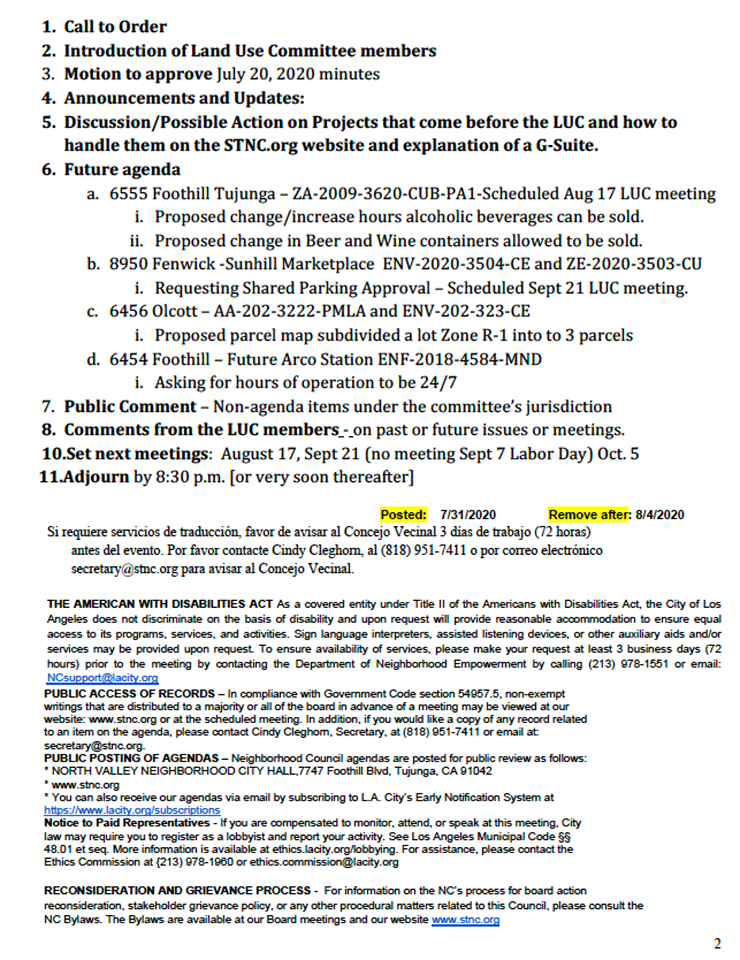 From Sunland-Tujunga Neighborhood Council STNC – STNC’s Land Use Committee will Meet Tonight